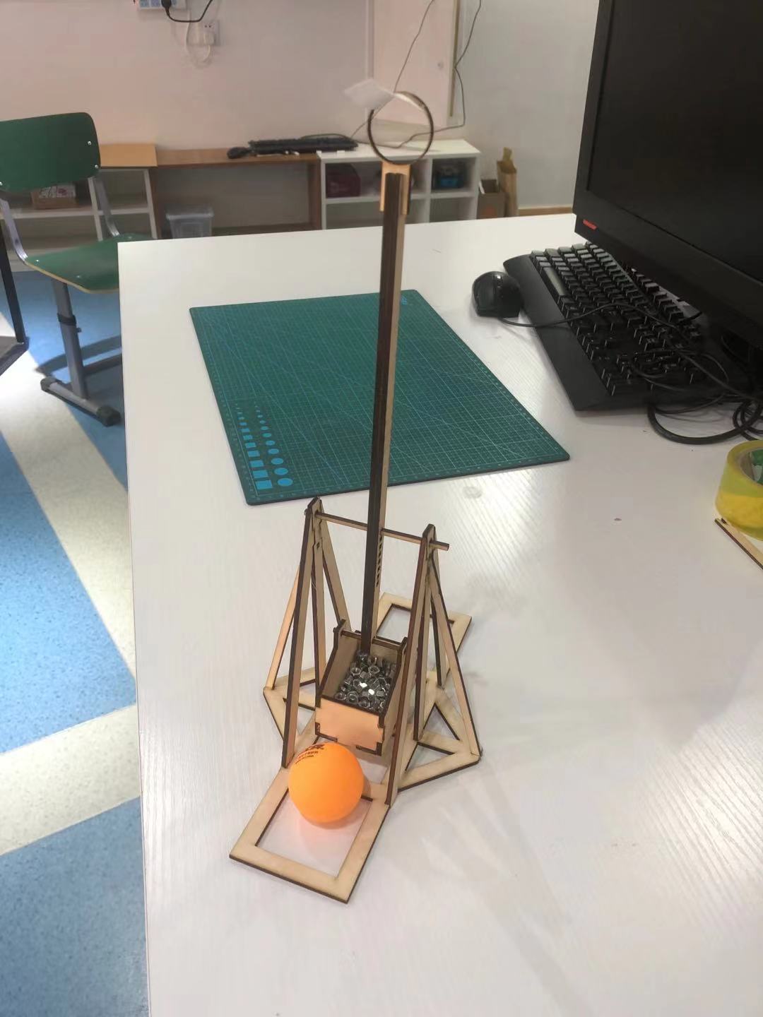 力臂可調,配重投石機。