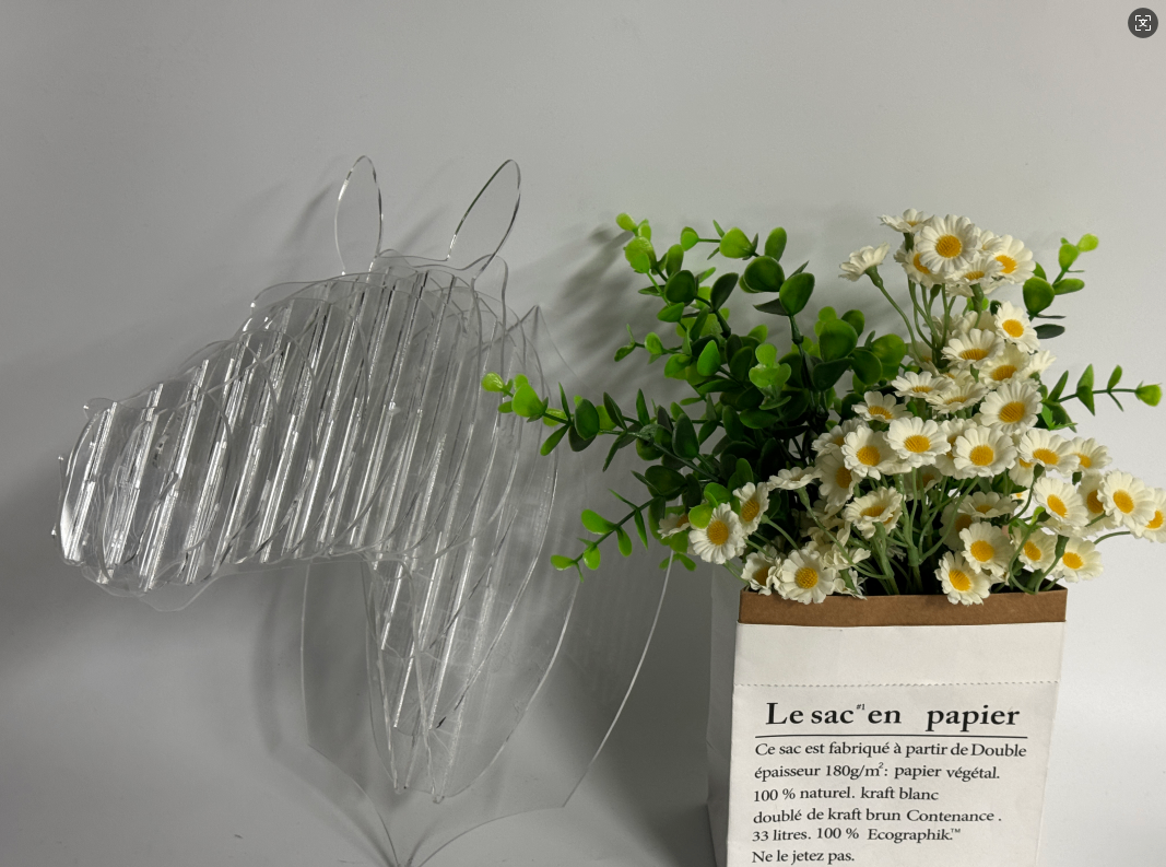 它以激光切割 + 层叠工艺呈现:亚克力薄片经精准切割出马头轮廓,多层叠加后通过光影透出灵动的立体感,透明材质自带轻盈通透的质感,既保留了马的利落线条,又契合现代空间的简约审美。