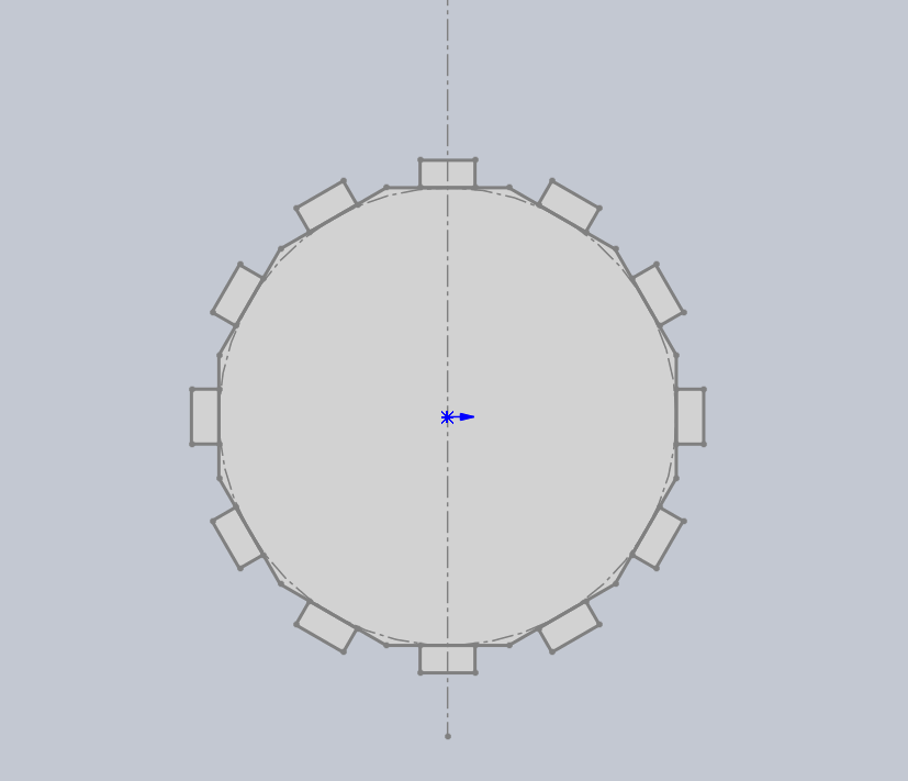 根据先前确定好的轮廓尺寸,我先绘制了一个12边形,并在这12条边上都绘制上用于插接的凸起。